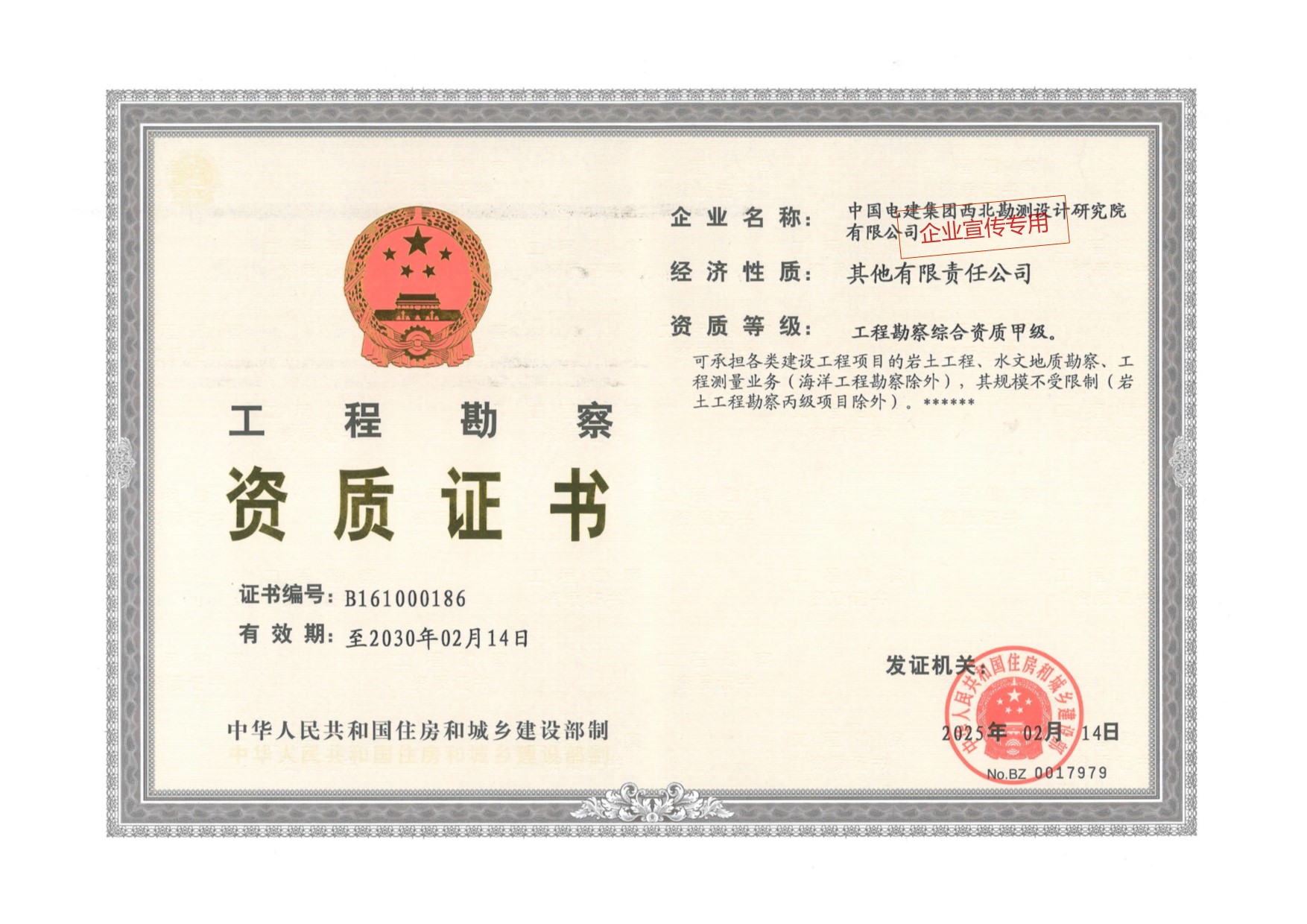 工程勘察资质证书